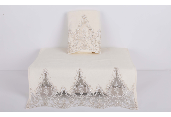 Kadife El İşlemeli Fransız Güpürlü Havlu